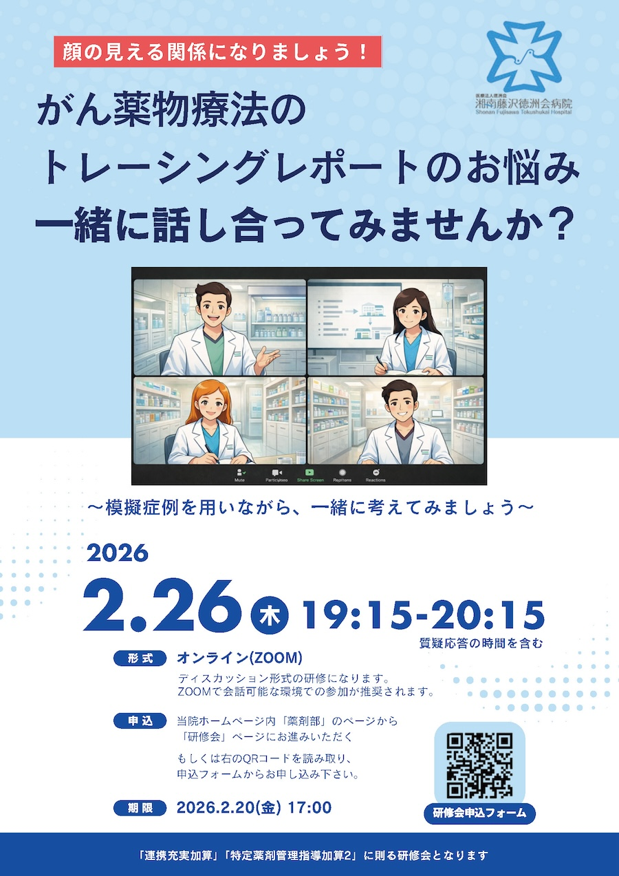 | TEL | 0466-35-1177(代表電話)薬剤部への取り次ぎをご依頼ください |